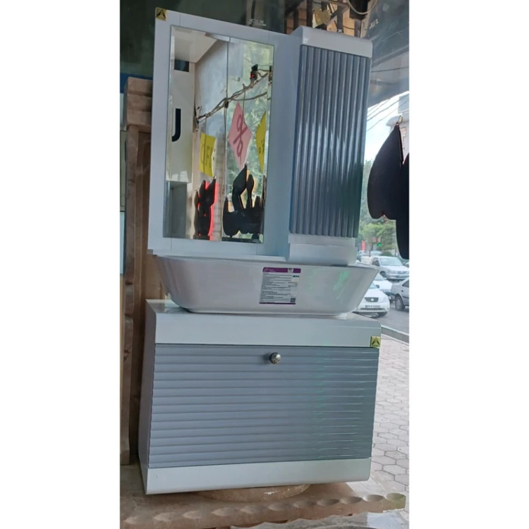 روشویی کابینتی pvc طوسی بامبو در 2 رنگ سفید و سفید طوسی سایز 55 در 35 همراه با آینه و باکس