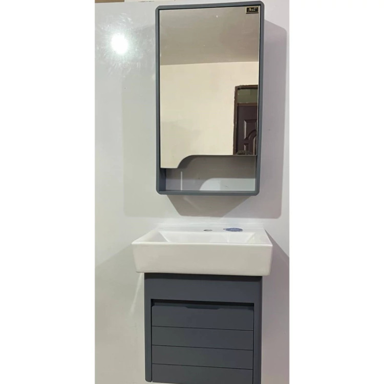 روشویی کابینتی pvc کوچک طوسی آتیلا ابعاد 46در30 همراه اینه و باکس مخفی