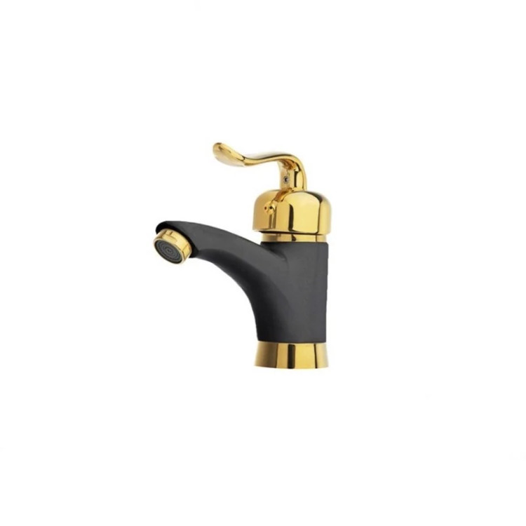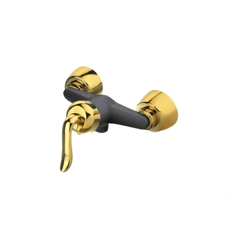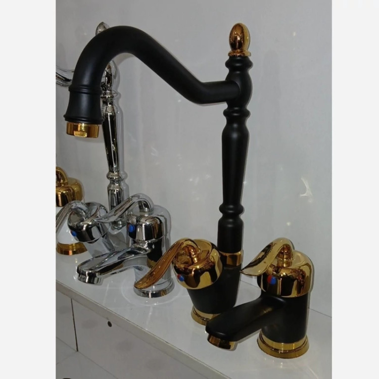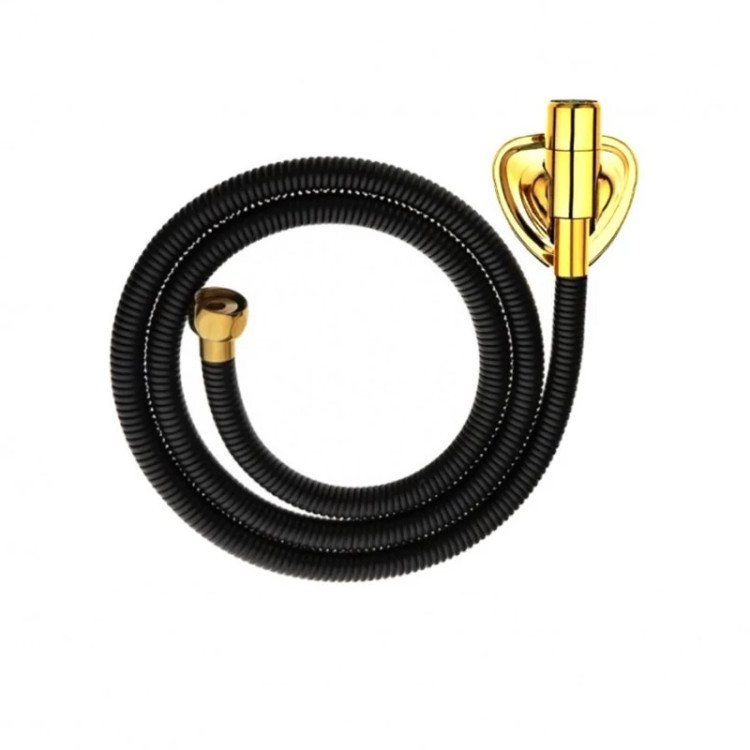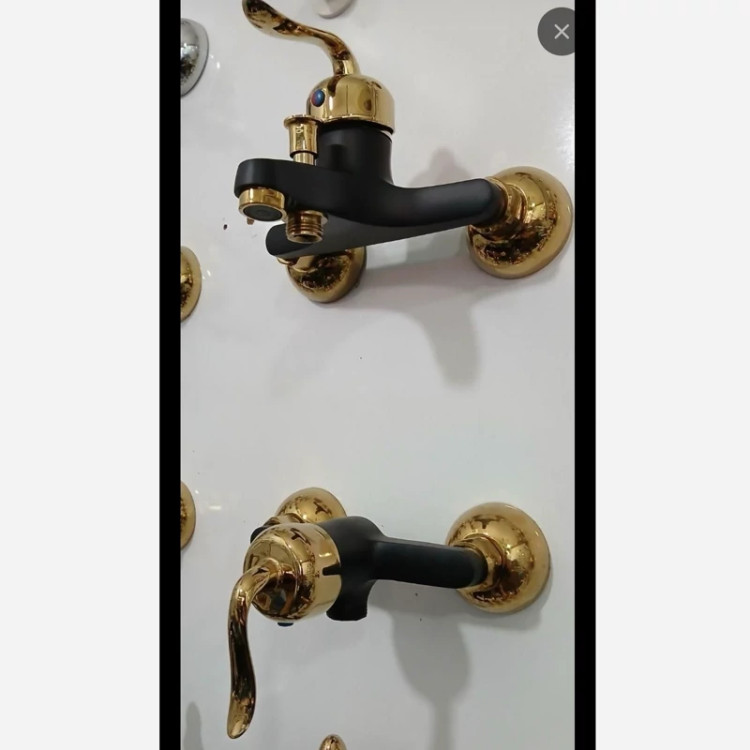 ست 6 عددی شیرآلات قاجاری مشکی طلایی با علم دوش دوکاره و شیلنگ توالت
