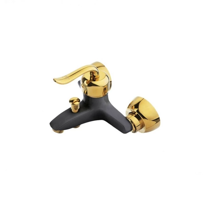 ست 6 عددی شیرآلات قاجاری مشکی طلایی با علم دوش دوکاره و شیلنگ توالت