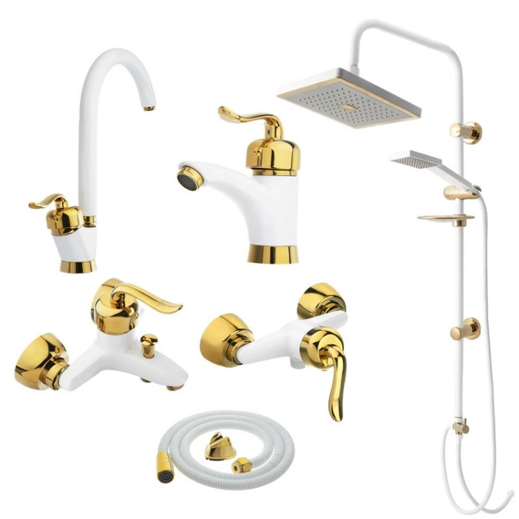 ست شیرآلات بهداشتی مدل قاجاری سفید طلا با علم عصایی مجموعه 6 عددی