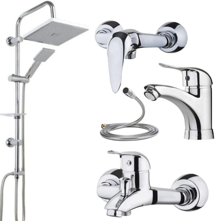 ست شیرآلات اهرمی رویال کروم مجموعه 5 عددی به همراه علم دوش حمام دوکاره رسوبگیر دار اتوماتیک و شلنگ سرویس بهداشتی