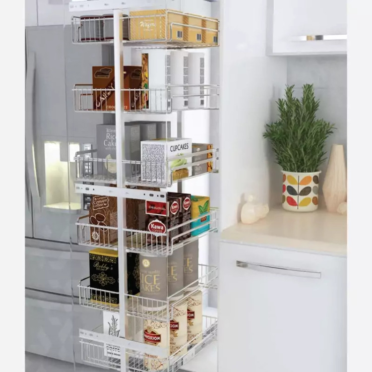 یکی از مواردی که معمولا در طراحی کابینت های کم عرض و عمیق مطرح می شود دسترسی آسان به کلیه ی بخش های کمد به خصوص قسمت انتهایی آن است. به همین منظور نصب سوپر مارکت کابینت مانند سبد سوپری وسط می تواند گزینه ای کاملا مناسب برای فضاهایی با ویژگی یاد شده باشد. به عنوان مثال اگر یک فضای خالی کم عرض و عمیق کنار یخچال خود دارید، ابتدا برای آن یک کابینت طراحی کرده و سپس سبد سوپری متناسب با یونیت را قرار دهید